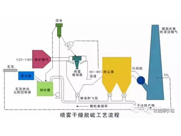 半干法煙氣脫硫技術(shù)是利用CaO加水制成Ca(OH)2懸浮液與煙氣接觸反應(yīng),去除煙氣中SO2、HCl、HF、SO3等氣態(tài)污染物的方法。半干法脫硫工藝具有技術(shù)成熟、系統(tǒng)可靠、工藝流程簡(jiǎn)單、耗水量少、占地面積小的優(yōu)點(diǎn),一般脫硫率可超過(guò)85%。目前應(yīng)用較為廣泛的主要有兩種:旋轉(zhuǎn)噴霧干燥法工藝和煙氣循環(huán)流化床工藝。