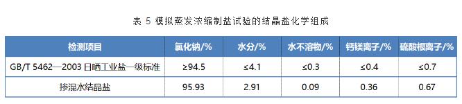 對(duì)摻混水制得的結(jié)晶鹽進(jìn)行化學(xué)成分檢測,結(jié)果見表 5。