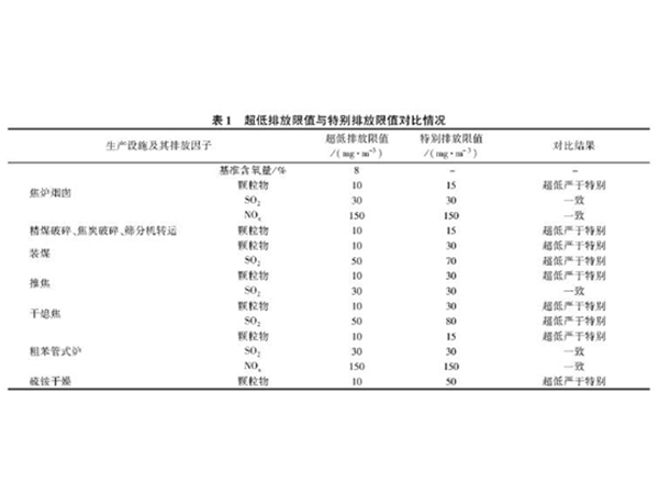 《鋼鐵企業(yè)超低排放改造工作方案(征求意見(jiàn)稿)》(環(huán)辦大氣函[2018]242號(hào))中焦化的排放限值總體上嚴(yán)于《煉焦化學(xué)工業(yè)污染排放標(biāo)準(zhǔn)》(GB 16171—2012)中的特別排放限值,詳細(xì)對(duì)比情況見(jiàn)表1。