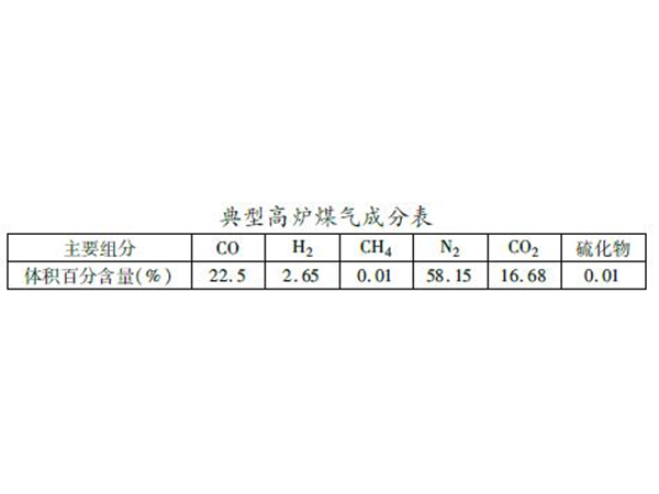 典型高爐煤氣成分表