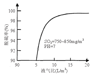 圖1 液氣比對(duì)脫硫效率的影響