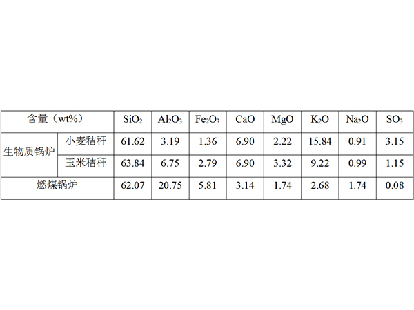 表2某生物質(zhì)鍋爐飛灰與燃煤鍋爐飛灰主要成分對比