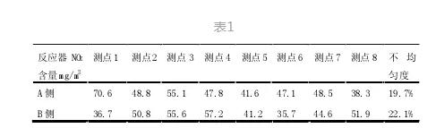 1.SCR反應(yīng)器出口NOX測量采用多點測量,每個反應(yīng)器出口截面采用8點測量,通過同步實時采樣、分時分析,實現(xiàn)在2~3分鐘內(nèi)完成一次截面NOX含量分布周期分析,如表1NOX分區(qū)測量系統(tǒng)某時段參數(shù)所示: